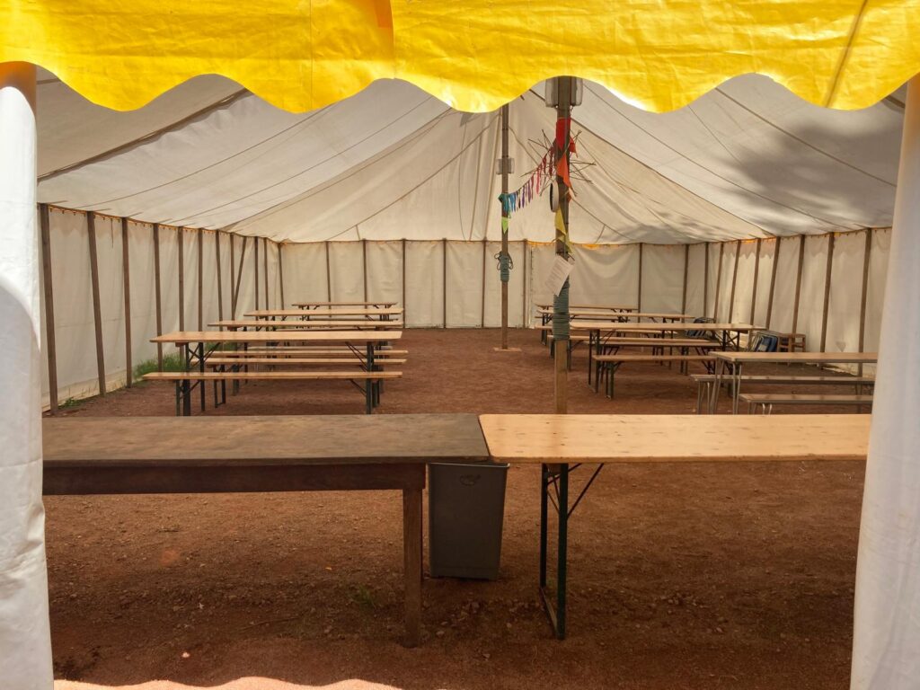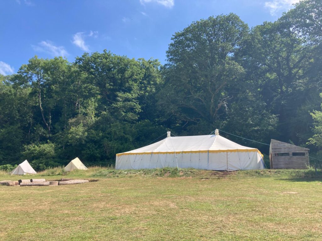 A large marquee for dining and activities.